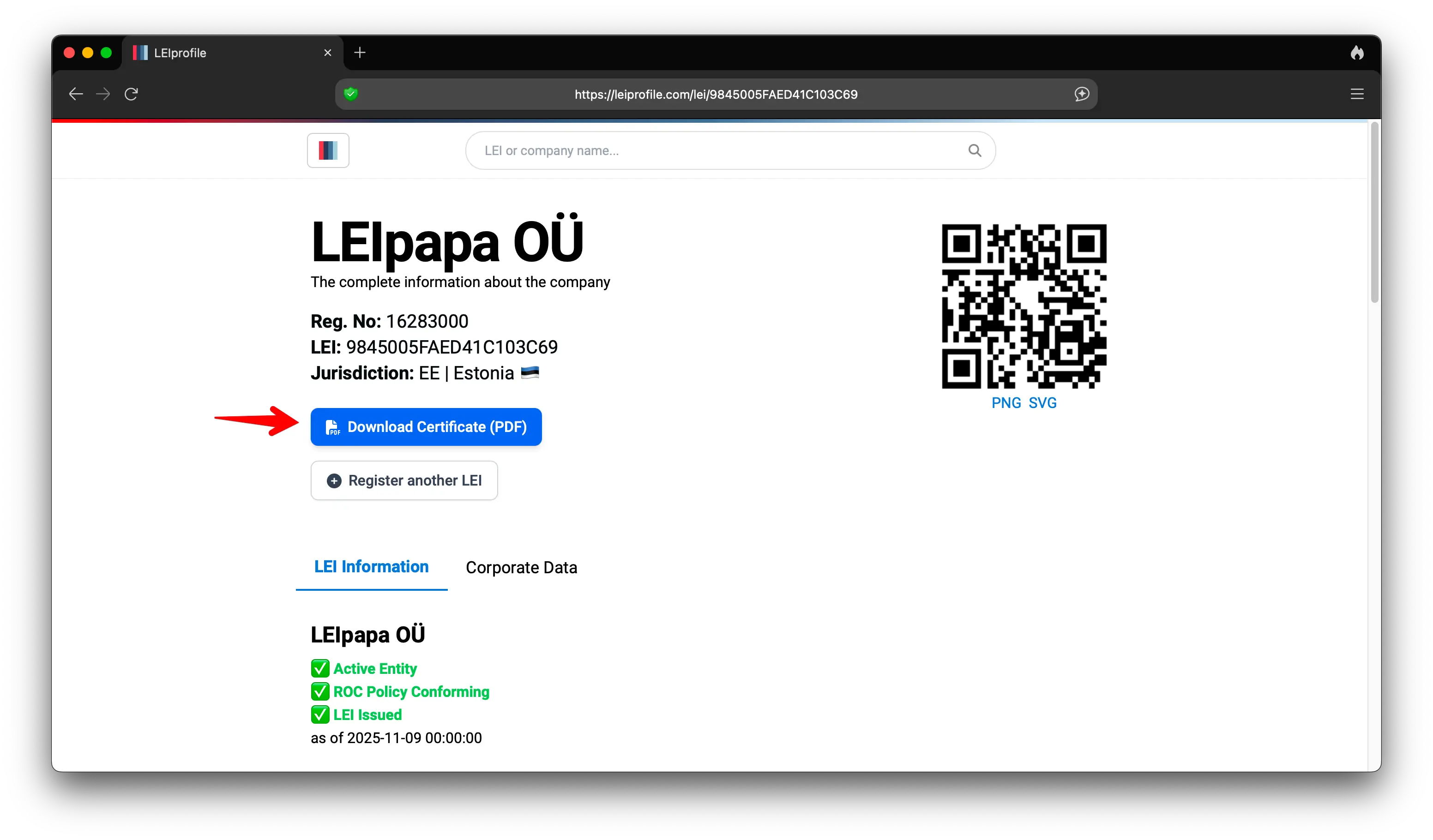 - 💼 Practical utility — attach your LEI certificate to contracts, tenders, or compliance reports.